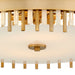Alternating rods of steel and alabaster-style resin encircle candelabra sockets in the Cassio series of mid-century, empire styled lighting. A frosted glass diffuser expertly distributes light for a soft, warm glow. Aged brass finished steel paired with whisps of white in the resin rods creates a timeless facade that boosts any interior design project. Available in pendant or flush mount options.