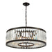 The Palacial collection features a cascade of prismatic crystal suspended from an oil rubbed bronze or polished chrome frame. The triangular profile of each crystal bends light into various angles, enhancing its visual depth and beauty.