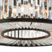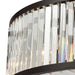 The Palacial collection features a cascade of prismatic crystal suspended from an oil rubbed bronze or polished chrome frame. The triangular profile of each crystal bends light into various angles, enhancing its visual depth and beauty.