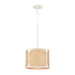 The Coastal Breeze collection features a natural wicker shade with White Coral finished surrounding metalwork. An opal white glass globe sits in the center providing an even light that highlights the natural material.