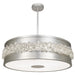 Chandelier in a silver leaf finish featuring hundreds of rough cut crystal glass gems that refract light in a manner reminiscent to the cirrus clouds ice crystals that form the lunar halo in the frozen night sky. Also available in champagne tinted gold leaf or matte black.