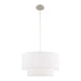The transitional design of this pendant chandelier is as beautiful as it is simple. A brushed nickel finish frame is paired with a light and airy hand crafted hardback off-white drum shade.