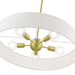 The Venlo collection is both modern and versatile. The satin brass finish with shiny white finish accents and hand-crafted off-white colored fabric hardback shade sets a pleasant mood. This sleek large five-light drum pendant is a perfect fit for the living room, dining room, kitchen and bedroom.