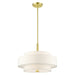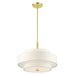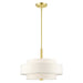 The Meridian collection has a clean, crisp look and contemporary appeal. The hand-crafted off-white fabric hardback shades offer a diffused warm light. This four-light multi-tier drum shade adds character to this handsomely styled pendant chandelier. Will adapt well in the living room, dining room or in the bedroom tastefully elevating your style. This sleek design is shown in a satin brass finish.