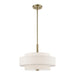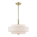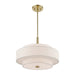 A triple drum shade adds character to this handsomely styled pendant light. Update your decor with the clean styling of this contemporary four light pendant from the Monroe collection. Features a lovely hand crafted oatmeal color fabric hardback shade and satin white acrylic diffuser for subtle illumination.