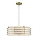 The Blanchard pendant chandelier adds refined style and a hint of mystery to your décor. The antique brass finish and an oatmeal handcrafted hardback shade create warm illumination, while soft light brings to life the intricate fretwork pattern. This four-light drum pendant chandelieràwill add a sophisticated and glamorous look to almost any interior design style. It will work great in the living room, over the dining table or kitchen counter and the bedroom.