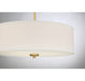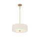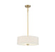 This Meridian 3-light pendant presents timeless drum pendant lighting style that is perfectly suited for brightening up any space. Its crisp shade of white fabric pairs well with the bold natural brass finish. Whether you use this pendant alone or in multiples, you will love how it looks! This pendant is 6.5" in height and 18" in width, plus it includes four 12" downrods and one 6" downrod to let you adjust the height for a maximum of 60.5". This pendant uses 3 standard size bulbs of up to 60 watts each, is LED compatible, is dimmable and can be used on a sloped ceiling.