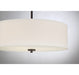This Meridian 3-light pendant presents timeless drum pendant lighting style that is perfectly suited for brightening up any space. Its crisp shade of white fabric pairs well with the bold oil rubbed bronze finish. Whether you use this pendant alone or in multiples, you will love how it looks! This pendant is 6.5" in height and 18" in width, plus it includes four 12" downrods and one 6" downrod to let you adjust the height for a maximum of 60.5". This pendant uses 3 standard size bulbs of up to 60 watts each, is LED compatible, is dimmable and can be used on a sloped ceiling.