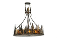 Drawing inspiration from the wildlife and natural beauty in the nearby Adirondack Mountains. AMajestic Bear wandering through the forest tops this wildlife inspired circular ceiling fixture while surrounded by Tall Pine Tree silhouettes. Above the shade is a matching hub with smaller metal Pine Trees. The frame features Shotgun Shell accents and the shade reveals Amber Mica with a matching bottom diffuser. The pendant is enhanced with an Antique Copper finish. The overall height ranges from 37 to 67 as the chain can be adjusted in the field. The Bear at Dusk fixture is Domestically Produced in the USA at our Yorkville, NY manufacturing facility. Customize lens colors, metal finishes and fixture sizes. UL and cUL listed for dry and damp locations.