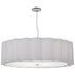 Designed with a stunning flower-pleated profile that fits into a wide array of hospitality, residential and commercial spaces, this exquisite ceiling pendant design defines a distinctive sophisticated aesthetic. The White Textrene shade is enhanced with a Statuario Idalight bottom diffuser and complemented with Nickel powder coated hardware. Customer supplied A19 LEDs provide energy savings and long lamp life. Handcrafted in the USA, this fixture is available in custom colors, styles and sizes, as well as dimmable energy efficient lamping options. The pendant is UL and cUL listed for damp and dry locations.