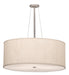 Designed with a curved profile and a clean architectural look. This appealing and versatile ceiling pendant reveals a sophisticated aesthetic. The Cilindro features an Eggshell Textrene shade enhanced with an Angelwing Idalight bottom diffuser. The hardware is featured in Nickel and White powder coated finishes. Custom crafted by highly skilled artisans in our 180,000 square foot manufacturing facility in Yorkville, New York. Custom sizes, finishes and diffuser colors available. UL and cUL listed for dry and damp locations however we do not recommend installing it in spaces that experience a large amount of moisture due to the fabric shade.