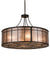 The Glendale Mission Inverted pendant features a continuous band of T mission patterns on a impressive drum shaped shade. The fixture is hand finished in a Timeless Bronze powdercoat and has Silver Mica panels. Made in the U S A by Meyda craftsmen, this fixture is a stunning piece of art waiting to light your home.
