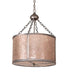 An Arts & Crafts drum pendant features warm Silver Mica panels complemented with hand finished Steel with a cross pattern on the diffuser below. The fixture is handcrafted by Meyda artisans at the foothills of the Adirondack Mountains in Upstate New York. Custom sizes, styles and colors available Energy efficient lamping options.