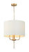 Varaluz 368P03GOW Three Light Pendant, Painted Gold/White Leather