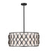 Timeless artistry and symmetry brings an exquisite vibe to this eight-light pendant, a classic fixture with plenty of versatility and construction of bold matte black steel. A drum silhouette is aesthetically pleasing as this fixture offers artisan ribbon waves cascading vertically down its banded frame, and a soft white fabric diffuser maintains pleasing lighting effects. Candelabra-style lights and a round canopy complete a checklist of features that round out an iconic look in a pendant that adds elegance to kitchens, foyers, and dining spaces.