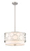 Create a breathtaking contemporary aesthetic within a space with this transitional three-light pendant. A soothing glow emitted from inside a beautiful white linen drum shade as a brushed nickel finish cage offers a champagne bubble-inspired, geometric motif that catches the eye.