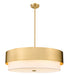 Add an expressive dose of both Mid-Century Modern personality and clean industrial style to a contemporary or transitional space with a light fixture created for today's living spaces. This six-light pendant from the Counterpoint collection offers sleek finishes with a modern gold steel round frame and protruding white fabric shade, each becoming a piece of a puzzle showcasing personality. Choose this multi-light fixture to make a statement in a dining room, living area, or foyer.