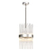 8-Light 10" Clear Staggered Solid Crystal Stems with Sleek Polished Nickel Band Cylindrical Shade Pendant.