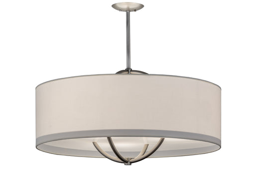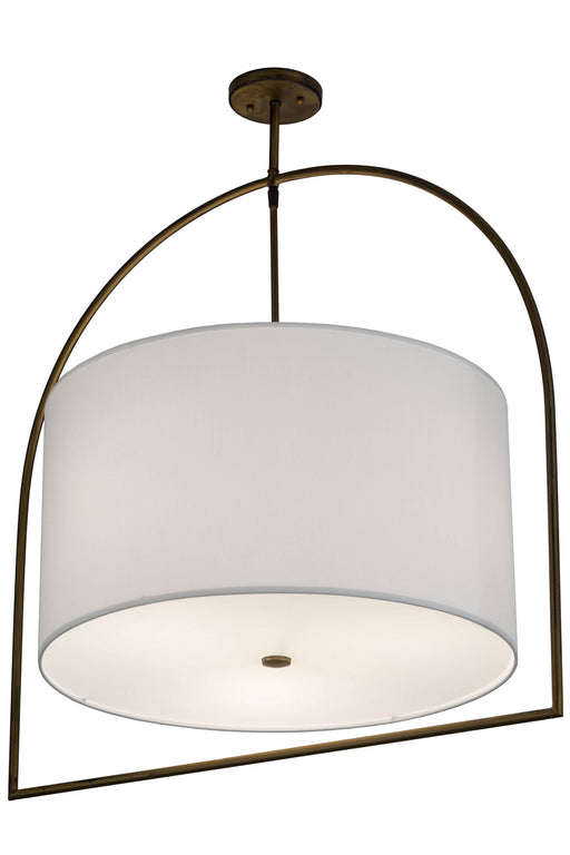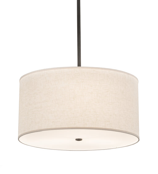 Elevate your modern living area with this urban bronze four light pendant chandelier featuring a hand crafted hardback oatmeal fabric shade cloaked...