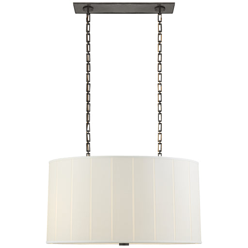 Perfect Pleat Oval Hanging Shade in Bronze with Silk ShadeDetails:Product Type: Drum ShadeFinish: BronzeShade: 35" x 36" x 19.25" Silk OvalDesigner...