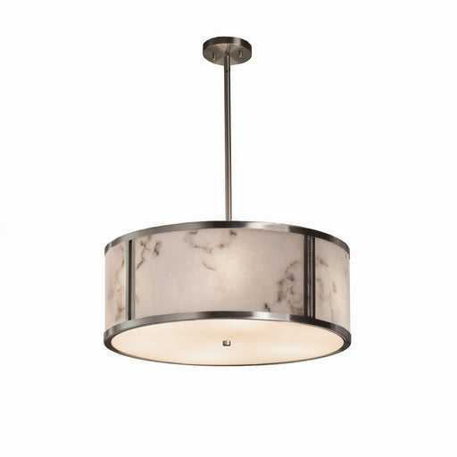 Details:Product Type: Drum ShadeFinish: Brushed NickelShade: Faux Alabaster ResinMeasurements:Width / Dia: 24.00"Height: 9.00"Canopy: .75" H x 5" D...