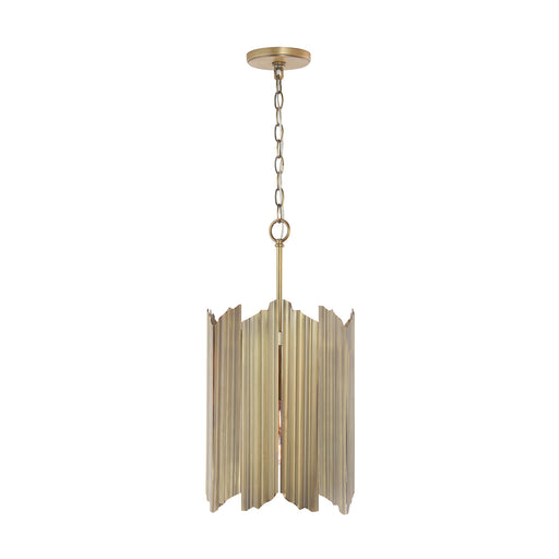 6 light pendant with Aged Brass finish and Corrugated Metal Panels shadeDetails:Product Type: Drum ShadeFinish: Aged BrassShade: Corrugated Metal P...