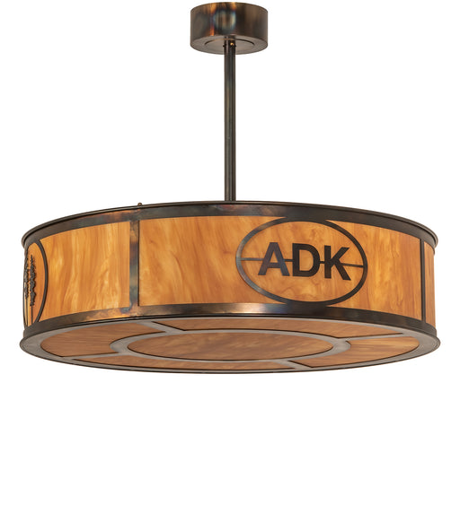 A stunning ceiling pendant personalized with the Adirondack Bank ADK logo and Tall Pine Trees graphics. Soft ambient light is diffused beautifully ...