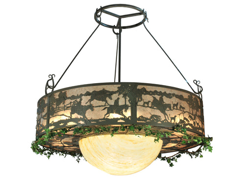 A herd of magestic Buffalo circle around this unique inverted rustic pendant, featuring a central down-light with a 50 watt MR16 halogen flood bulb...