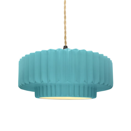 View full detailsJustice Designs CER-6553-SKBL-MBLK-BEIG-TWST One Light Pendant, Sky Blue