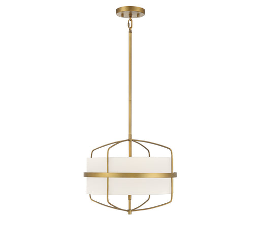 Halter - 4 Light Pendant - Medium Base - 60 Watt -Natural Brass Finish - White Fabric ShadeDetails:Product Type: Drum ShadeFinish: Natural BrassSha...