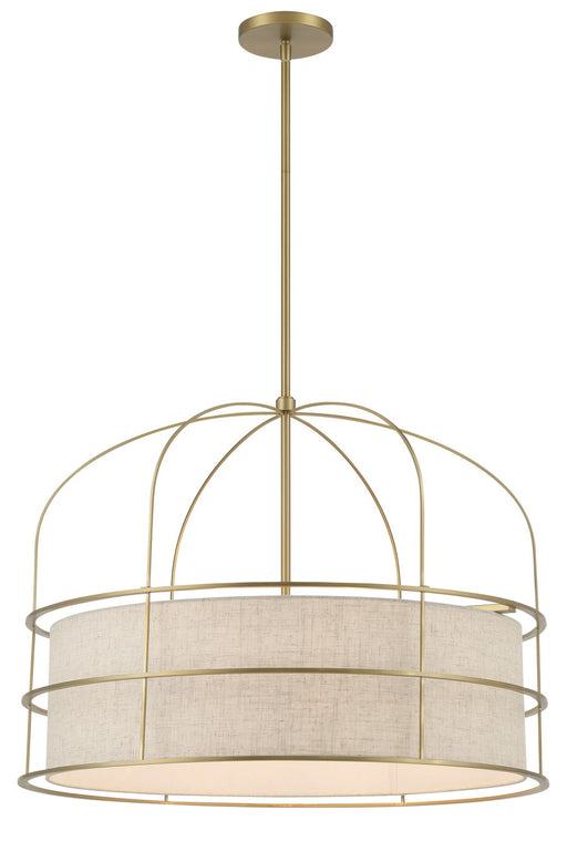 Gateway Park 6-Light Coal Pendant with Oatmeal Linen ShadeDetails:Product Type: Drum ShadeFinish: Soft BrassShade: Oatmeal LinenMeasurements:Width ...