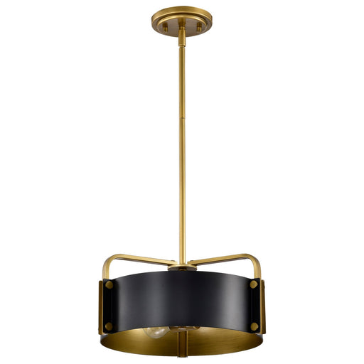 Caprio 4-Light Natural Brushed Brass Pendant with Black Fabric ShadeDetails:Product Type: Drum ShadeFinish: Brushed BrassShade: Black Outside/White...