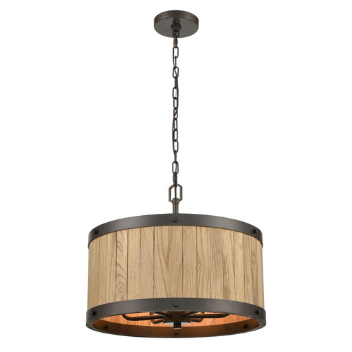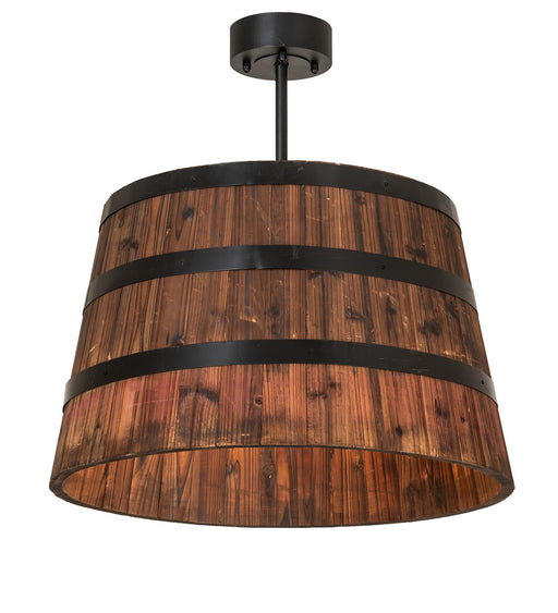 Rustic charm radiates from this extraordinary pendant, which features a Wooden Barrel with Black finished bands with matching hardware. This unique...