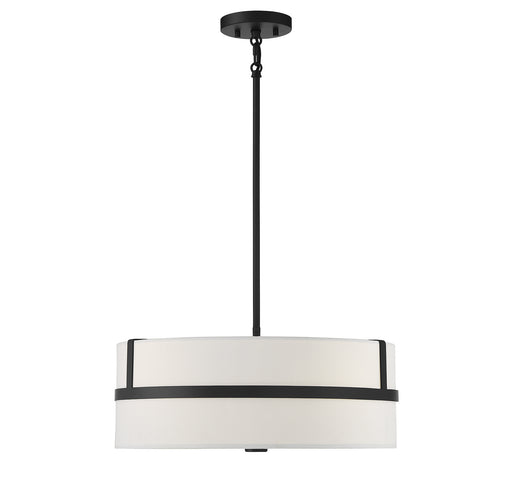Pep up the lighting style in any room with this chic Meridian 4-light pendant. Pairing a drum-shaped shade of white fabric with a matte black finis...