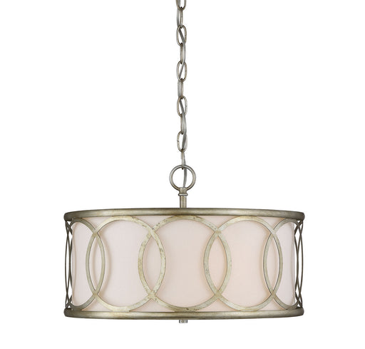Add an elegant and eye-catching lighting look to your home when you bring in this 3-light drum shade pendant. A white fabric shade is decorated wit...