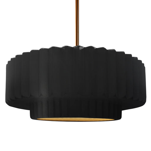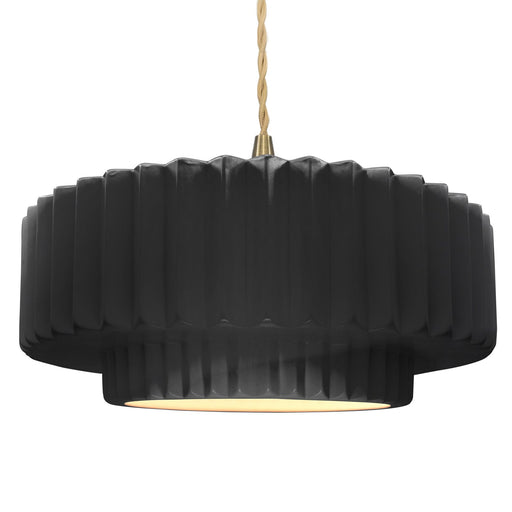 View full detailsJustice Designs CER-6555-BKMT-BRSS-BEIG-TWST One Light Pendant, Gloss Black w/ Matte White
