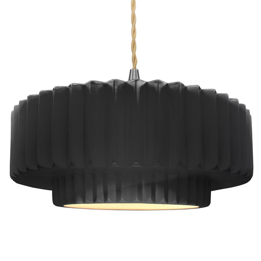 View full detailsJustice Designs CER-6555-BLK-MBLK-BEIG-TWST One Light Pendant, Gloss Black