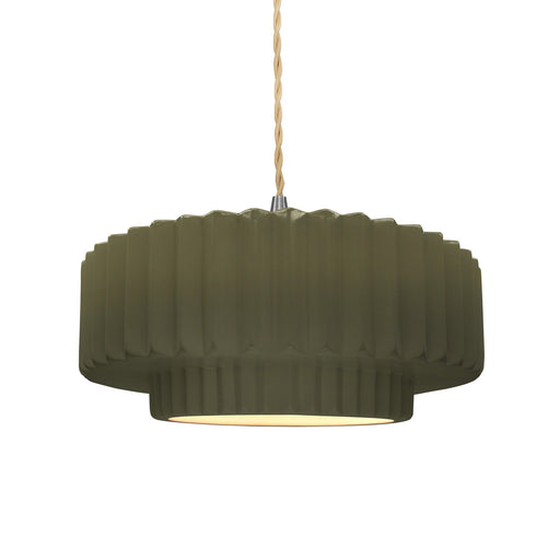 View full detailsJustice Designs CER-6553-MGRN-NCKL-BEIG-TWST One Light Pendant, Matte Green