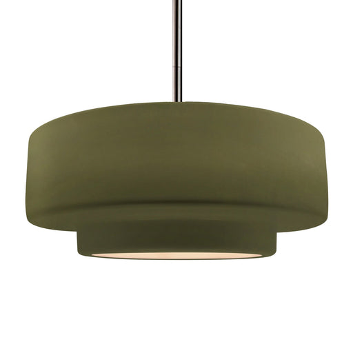 View full detailsJustice Designs CER-6545-MGRN-NCKL-BEIG-TWST One Light Pendant, Matte Green