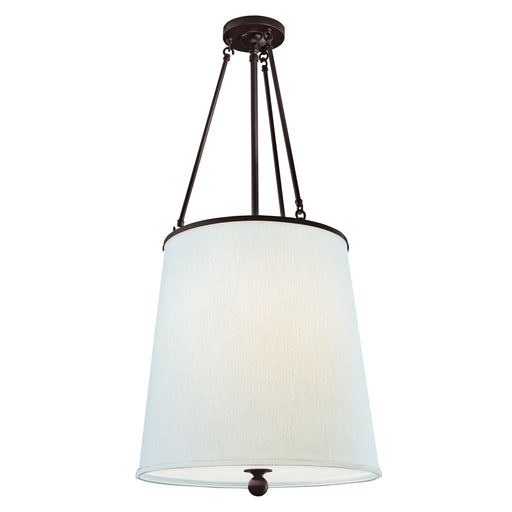 Livingston - 4 Light Pendant - Medium Base - 60 Watt - Putty Gray Finish - White Linen Fabric ShadeDetails:Product Type: Drum ShadeFinish: Putty Gr...