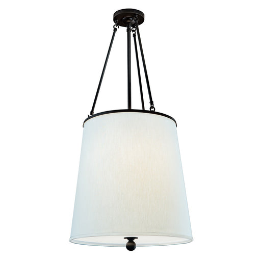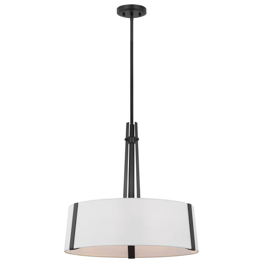 Livingston - 4 Light Pendant - Medium Base - 60 Watt - Matte Black Finish - White Linen Fabric ShadeDetails:Product Type: Drum ShadeFinish: Matte B...