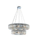 The Rondelle Collection features timeless single and multiple tier polished chrome round pendants of Firenze crystal baguette and squares.