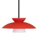 Trilo 15 is comprised of three complementary glass segments, resulting in a playful glass display. Our Red Matte glass is a vibrant primary red pressed glass, with a white inner layer. This décor can add an edgy, classic, or contemporary feel to any room. When lit this gives off a light that is functional and energetic. The smooth satin finish on the clear outer layer is a result of an extensive etching process. This handcrafted glass uses a process where every glass is consistently produced using a press mold, keeping variations to a minimum. The stem pendant fixture is equipped with an adjustable telescoping section, 4 connectable stem sections (3", 6", 12", and 18") and low Profile flat monopoint canopy. These stylish and functional luminaries are offered in a beautiful Black finish.