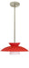 Trilo 15 is comprised of three complementary glass segments, resulting in a playful glass display. Our Red Matte glass is a vibrant primary red pressed glass, with a white inner layer. This dcor can add an edgy, classic, or contemporary feel to any room. When lit this gives off a light that is functional and energetic. The smooth satin finish on the clear outer layer is a result of an extensive etching process. This handcrafted glass uses a process where every glass is consistently produced using a press mold, keeping variations to a minimum. The stem pendant fixture is equipped with an adjustable telescoping section, 4 connectable stem sections (3", 6", 12", and 18") and low Profile flat monopoint canopy. These stylish and functional luminaries are offered in a beautiful Satin Nickel finish.
