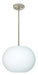 The Jordo pendant features a flattened globe-shaped glass, creating a refined contemporary look. Our Opal glass is a soft white cased glass that can suit any classic or modern decor. Opal has a very tranquil glow that is pleasing in appearance. The smooth satin finish on the clear outer layer is a result of an extensive etching process. This blown glass is handcrafted by a skilled artisan, utilizing century-old techniques passed down from generation to generation. The stem pendant fixture is equipped with an adjustable telescoping section, 4 connectable stem sections (3", 6", 12", and 18") and low Profile flat monopoint canopy. These stylish and functional luminaries are offered in a beautiful Satin Nickel finish.