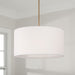 Looking for a simple statement? The clean diffused glow of this fabric drum pendant suspended by an Aged Brass rod is the perfect way to bring illumination while complementing any design style.