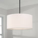 Looking for a simple statement? The clean diffused glow of this fabric drum pendant suspended by a Matte Black rod is the perfect way to bring illumination while complementing any design style.