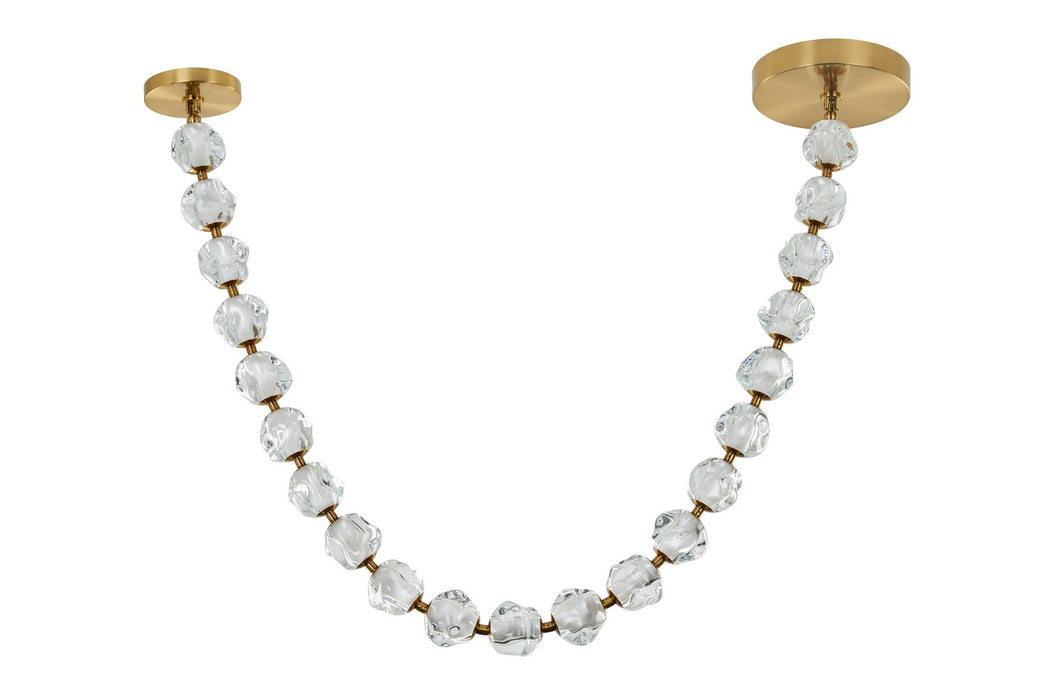 The Jackie LED Collection draws inspiration from the elegant luxury of a contemporary pearl necklace. It features dimmable LED modules encased in beautiful, organically shaped clear acrylic globes, complemented by finely crafted connectors. You can create a stunning custom work of art that makes a bold statement while providing beautiful illumination. This collection offers versatility with options for single or multiple strands, as well as round chandeliers, pendants, and sconces.