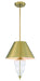The Nabu three light pendant exudes refined elegance with a satin brass shade accentuating the graceful curves of the clear blown glass.
