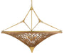 Working with natural materials like rattan is a strong suit of our artisans, who've taken the reeds and woven them into a work of art in our Gaborone Chandelier. The frame is made of wrought iron in a contemporary gold leaf finish. The hanging hardware on this natural rattan chandelier and the pointed cap at its bottom-most point add to the warmth of this lovely fixture.